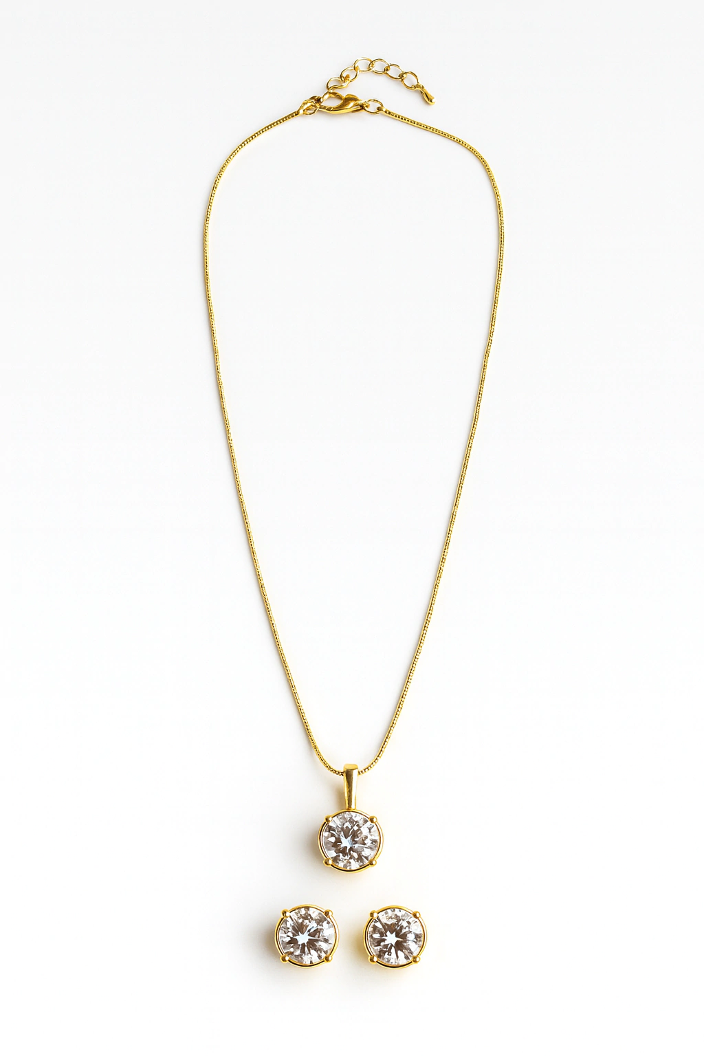 Conjunto Brilho – clássico e atemporal, perfeito para realçar a beleza em qualquer ocasião. O kit é composto por colar delicado com pedra central de zircônia e brincos ponto de luz combinando, trazendo um toque sofisticado e elegante. Produzido em bijuteria fina com camada de verniz protetor, garante brilho intenso e durabilidade.